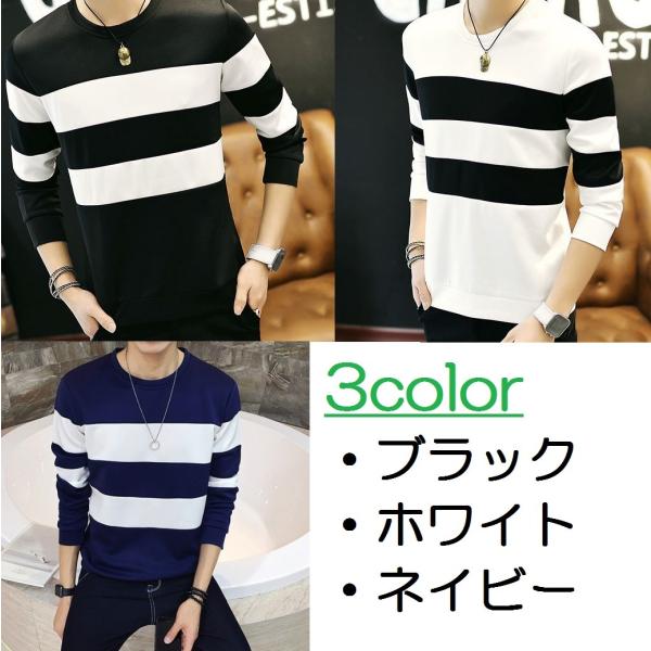 送料無料 ボーダー柄トレーナー メンズ 韓国系 人気 ロンt Tシャツ カットソー Buyma