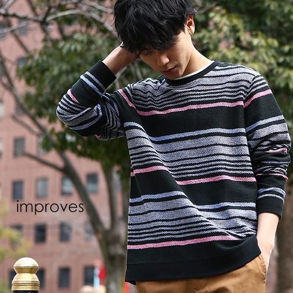 Amazon インプローブス スウェットトレーナー 長袖裏使いボーダー裏毛スウェットトレーナー メンズ トレーナー パーカー 通販